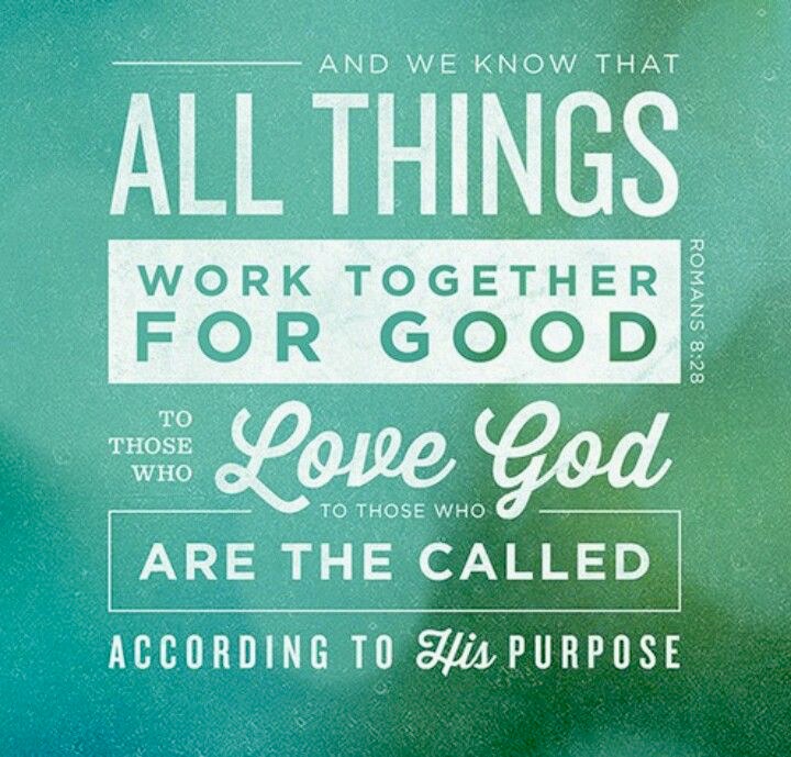 Finally, Romans 8:28 promises all things work together for good, for them that love the Lord, who are called according to His purposes!