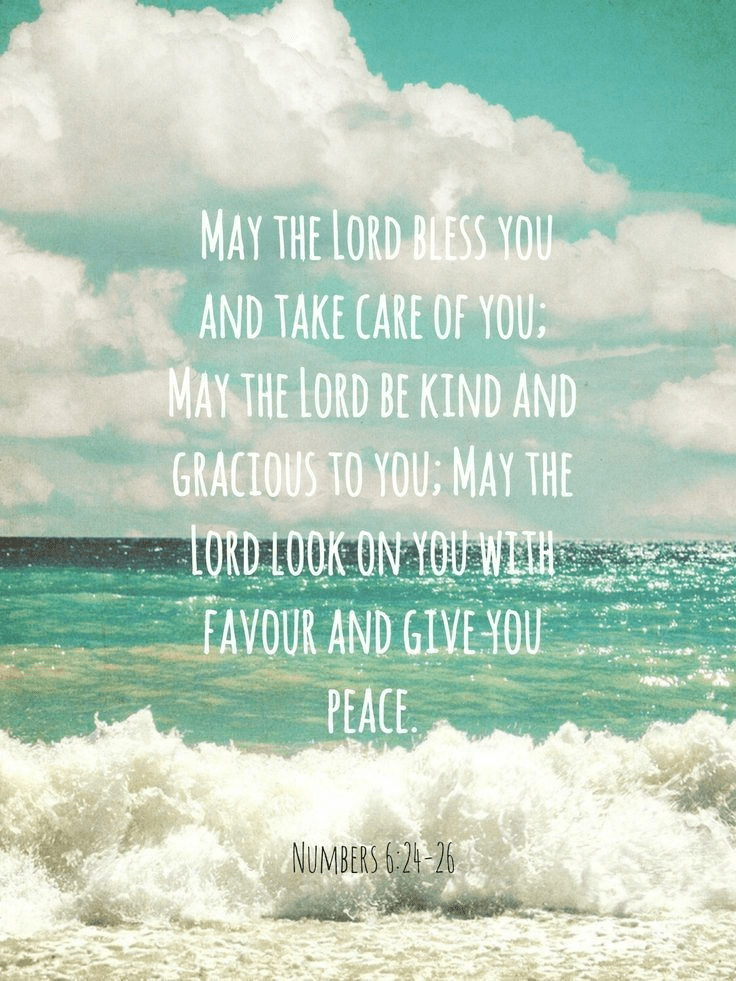 The Lord bless you and keep you, the Lord make His face shine upon you and be gracious to you and give you peace. Numbers 6:24-26