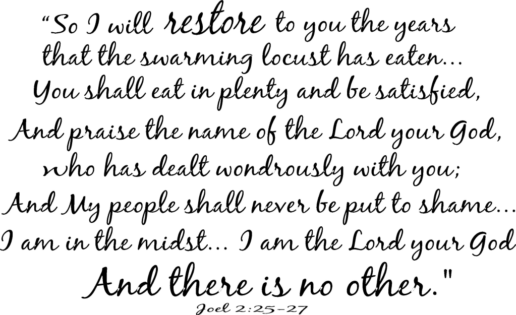 25 “And I have repaid to you the years that the locust consumed, || The cankerworm, and the caterpillar, and the palmer-worm, || My great force that I sent against you.