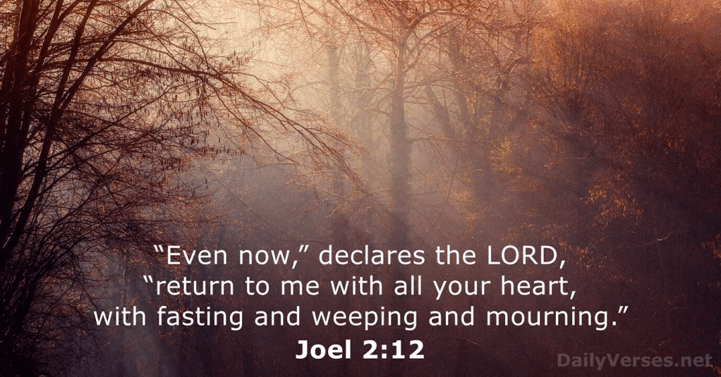 12 “And also now,” a declaration of Yhwh (God/Yahweh), || “Turn back to Me with all your heart, || And with fasting, and with weeping, || And with lamentation.”