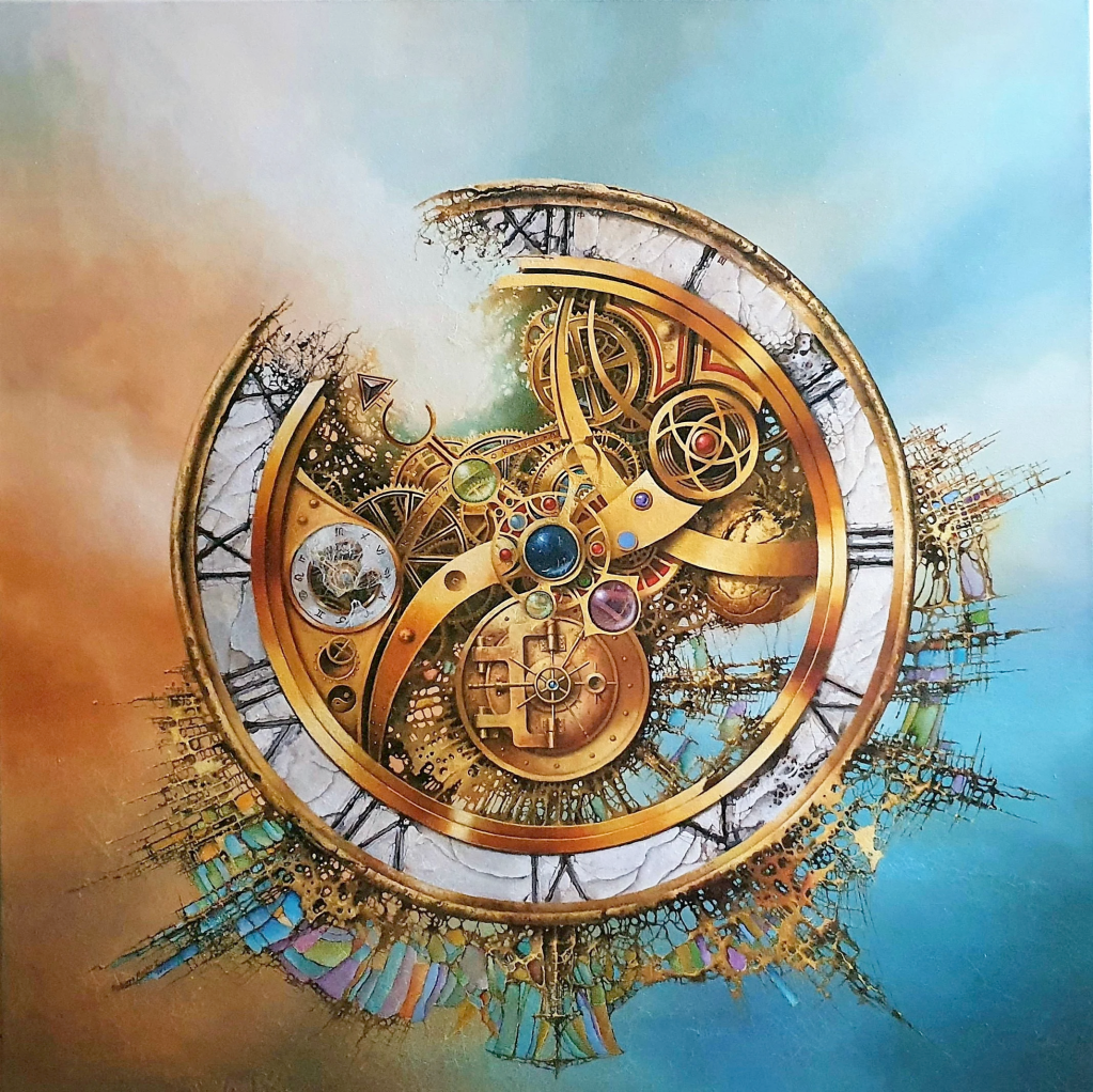 Dream: I was standing in a dark room in front of a brown wall. One odd, metallic clock was in the middle of the wall. The clock was industrial in appearance, I could see the inner workings, and was seemingly made of fine metal, bronze in color. In my left hand, I held a little instruction sheet, and it named the clock, “World Clock”. It also said, “with the key, turn the clock to the number, “1”.