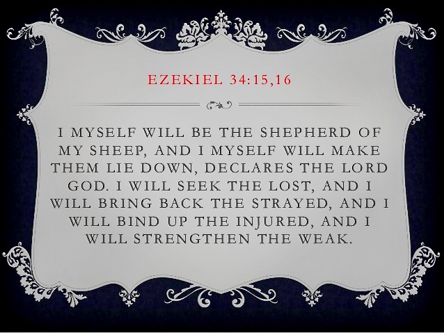 11 ‘For thus says the Lord God: “Indeed I Myself will search for My sheep and seek them out. 12 As a shepherd seeks out his flock on the day he is among his scattered sheep, so will I seek out My sheep and deliver them from all the places where they were scattered on a cloudy and dark day. 13 And I will bring them out from the peoples and gather them from the countries, and will bring them to their own land; I will feed them on the mountains of Israel, [b]in the valleys and in all the inhabited places of the country. 14 I will feed them in good pasture, and their fold shall be on the high mountains of Israel. There they shall lie down in a good fold and feed in rich pasture on the mountains of Israel. 15 I will feed My flock, and I will make them lie down,” says the Lord God. 16 “I will seek what was lost and bring back what was driven away, bind up the broken and strengthen what was sick; but I will destroy the fat and the strong (those living selfishly in wealth and power), and feed them in judgment.”